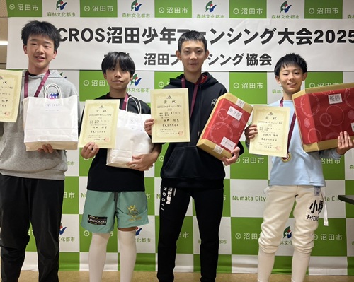 大会名:香港ホストタウン記念フェンシング大会 兼 上杉大会 期 日:令和7年10月26日(日) 場 所:米沢市営体育館 成 績:カデ男子エペ 第4位 滝沢 彪太(沼田高校1年) ※滝沢くん(本クラブ出身)は日本協会によるデンマーク遠征(11月)に派遣予定。 |