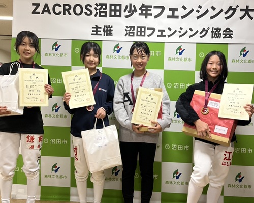 期 日:令和7年11月22日(土) 場 所:ヤマト市民体育館剣道場 成 績: [小学1・2年男女フルーレ]優勝 石崎皆実 2位 男沢侑惺 3位 森下葵心 4位 鎌田 柊 [小学3・4年男子フルーレ]優勝 佐伯 純 2位 青木凜乃介 4位 青池奏翔 [小学3・4年女子フルーレ]優勝 鎌田紗幸 3位 石崎柚貴 4位 山口真生 [小学5・6年男子フルーレ]4位 滝沢 快斗 [小学5・6年女子フルーレ]優勝 新井菜月 2位 生方咲樹 3位 佐伯 華 4位 青池音波 [中学男子フルーレ] 優勝 金井駿平 3位 宮田壮祐 [中学女子フルーレ] 優勝 小嶌莉央 2位 小林ひな 3位 石崎実音 [中学男子エペ] 優勝 原澤月乃丞 3位 青木大河 [中学女子エペ] 優勝 石崎実音 2位 青池香音 3位 新井莉音 [中学男子サーブル] 優勝 金井駿平 2位 宮田壮祐 [中学女子サーブル] 優勝 小林ひな 2位 小嶌莉央 3位 鎌田紗和 |