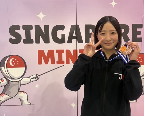 今年度の全国小学生大会上位入賞者で選抜された代表選手による海外遠征が シンガポールでおこなわれ、佐伯華さんが参加しました。 個人戦では3位に入賞し、団体戦では日本チームの優勝に貢献しました。 本クラブからは佐伯綾コーチが日本選手団の一員として帯同しました。 大会名:2026 Singapore Minime 2025 期 日:令和8年3月19日〜22日(金) 場 所:D’Marquee @Downtown East 成 績:〇U-14 Girls Foil 第3位 佐伯 華 〇U-14 Girls Foil Team 優 勝 日本(石黒瑠愛 今野新 佐伯華 澤芹奈) |
