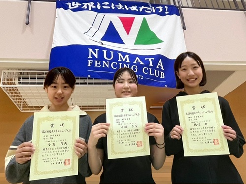 大会名:Japan Fencing Rising Cup 期 日:令和7年12月13日(土)・14日(日) 場 所:駒沢オリンピック公園 総合運動場 体育館 成 績:〇小学3・4年女子フルーレ 第2位 石崎柚貴 〇小学5・6年女子フルーレ 優 勝 佐伯 華 〇小学5・6年女子エペ 第2位 生方咲樹 〇中学男子サーブル 第2位 金井駿平 〇中学女子フルーレ 第2位 小林ひな 〇中学女子サーブル 第2位 鎌田紗和 |