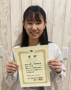 選出されました。 アジア大会での活躍が認められての受賞です。 1月21日に市内ホテルで行われた「新春を祝う集い」で表彰されました。 | |