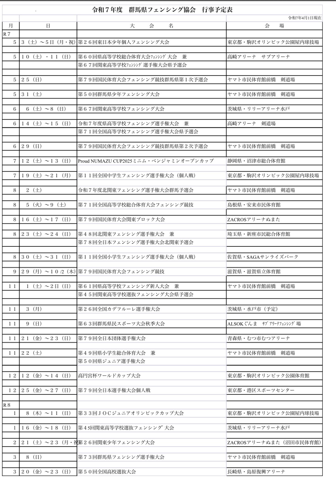 *上記予定は県内大会および日本フェンシング協会主催の大会です。