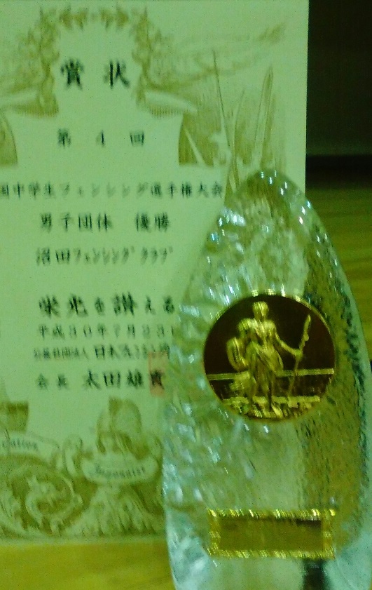 | 7月21日〜23日 | 第4回全国中学生フェンシング選手権大会 | ○男子団体 優勝 予選プール トーナメント1 トーナメント2 最終順位 |