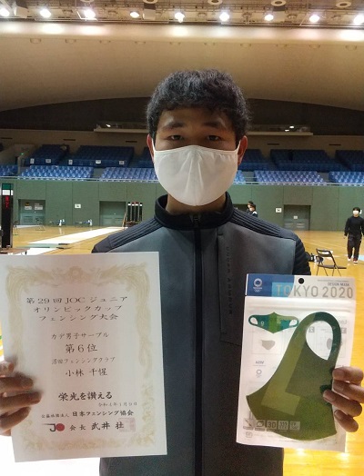 小林千惺くん第6位に入賞!第29回JOCジュニア・オリンピック・カップ ・フェンシング大会 期 日:令和4年1月9日(日) 会 場:駒沢オリンピック公園体育館 種 目:カデ男子サーブル 成 績:第6位 小林千惺 |